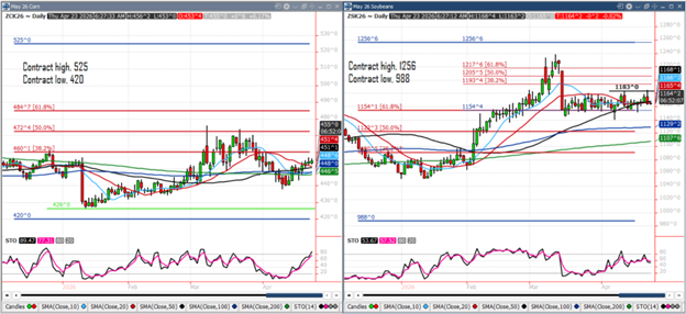 May corn is embarking on the 6th consecutive session of higher trade. Daily chart support moves up to 451 with major support at the 200-day moving average at 446. The upside targets reman 460, 472.